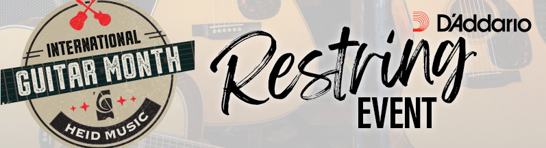Join Heid Music and D'Addario for our Guitar Month Restring Event! Bring in your used guitar strings for eco-friendly recycling through the D'Addario Playback program, and get your instrument professionally restrung while you're here.