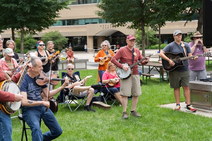 Local musicians—ranging from amateurs to professionals—donate their time to perform along College Avenue from noon to 1:00 PM, Monday–Friday.